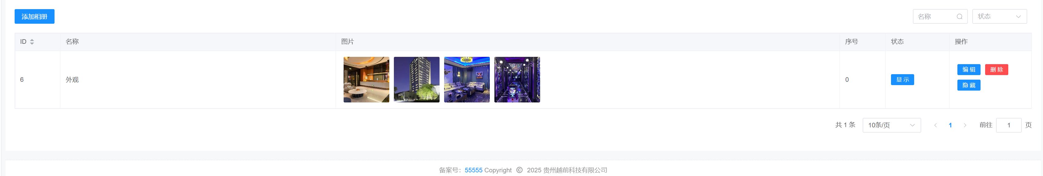 酒店相册可保存酒店的历史相册记录,可设置多个酒店相册,所有相册图片都会显示在酒店详情页