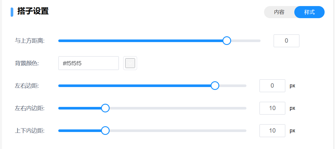 显示搭子列表,样式比较固定 可以设置性别显示类型 显示平台和展示人群就是是否展示在对应平台 展示人群就是设置哪些等级的人可以查看该组件  背景颜色可以设置组件的背景颜色 与上方距离就是设置这个组件和上一个组件的距离 左右外边距的意思就是组件距离页面左右边缘的距离设置 左右内边距就是组件距离边框左右边缘的距离 上下内边距则是组件距离边框上下边缘的距离