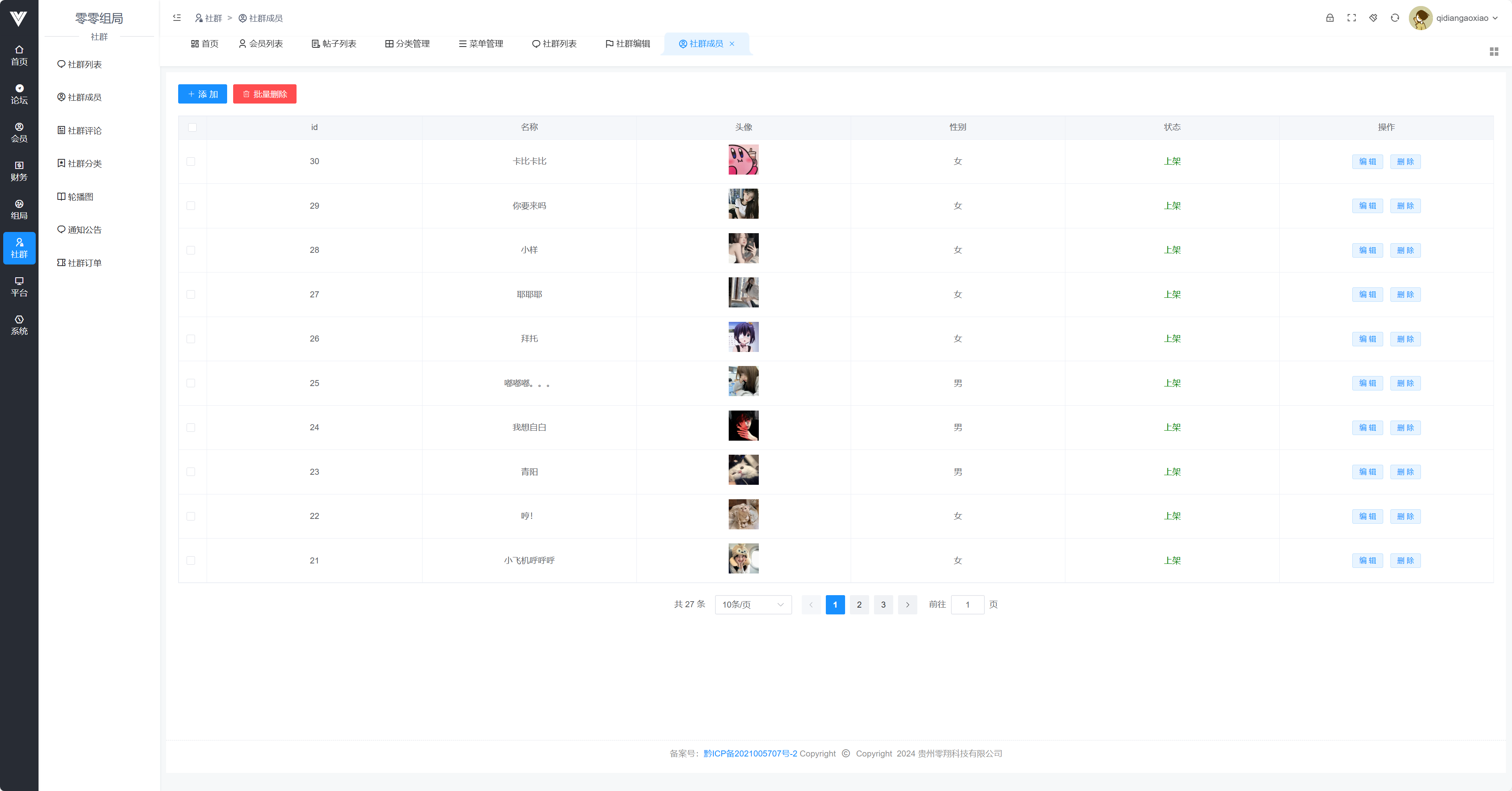此处可以设置显示在社群的详情页面的头像,可以上传头像和设置昵称,状态等