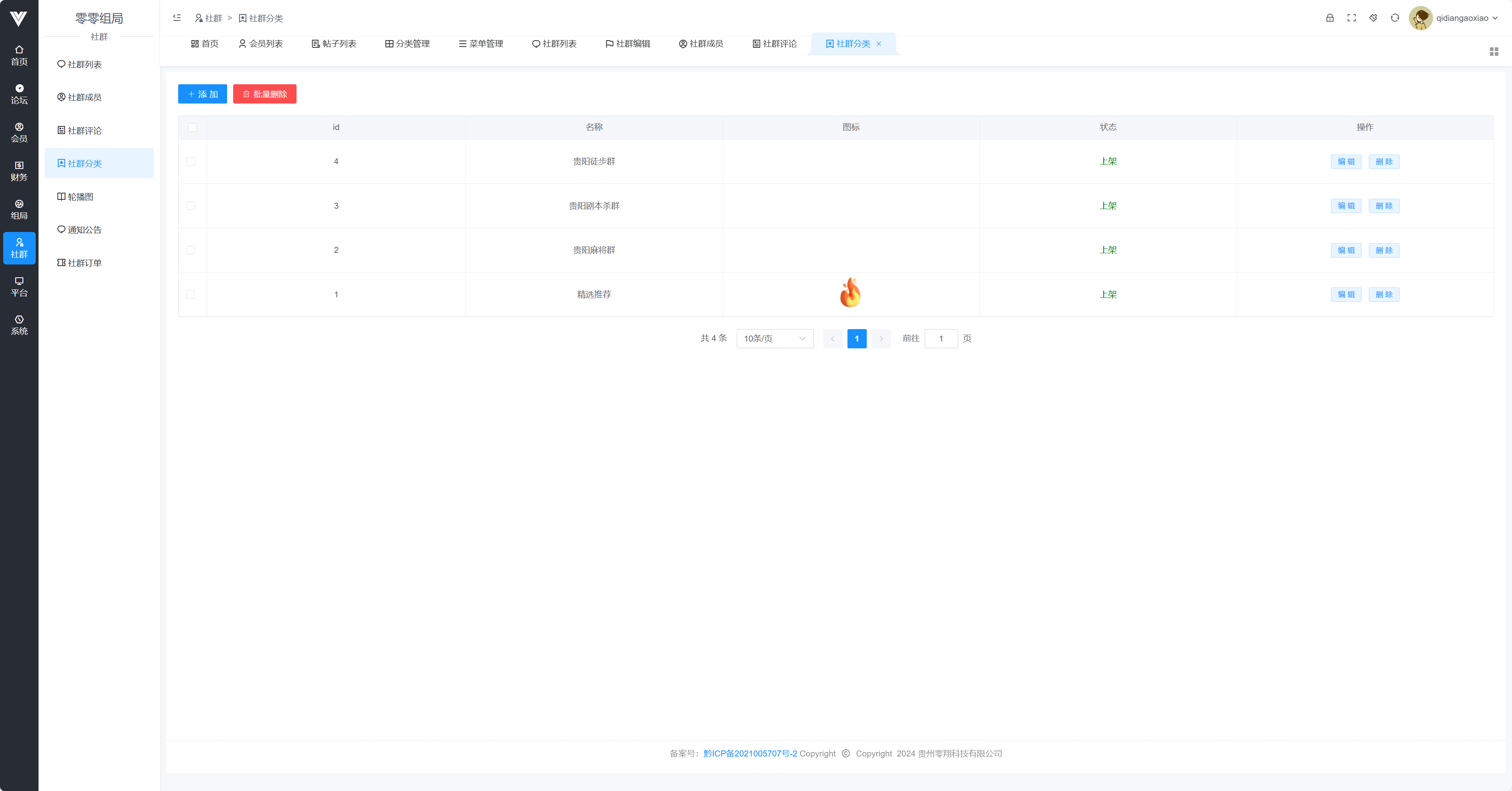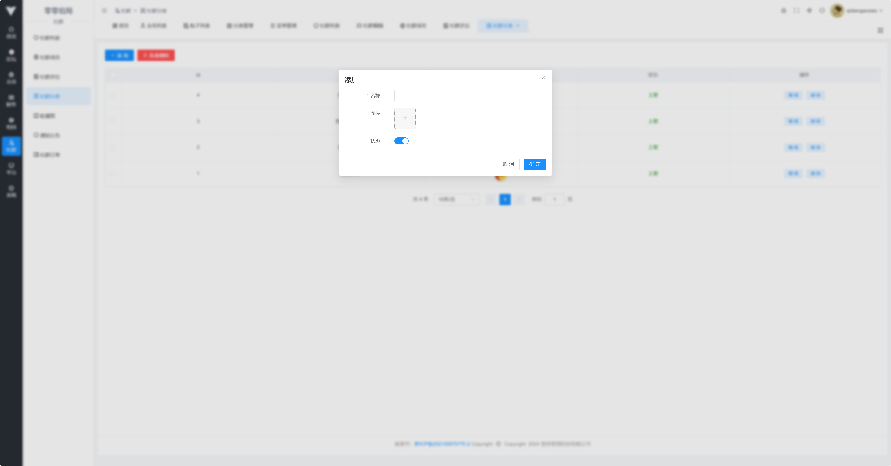 社群分类是显示在小程序的社群界面的分类,可以自己上传对应图标,设置对应名字并·设置状态