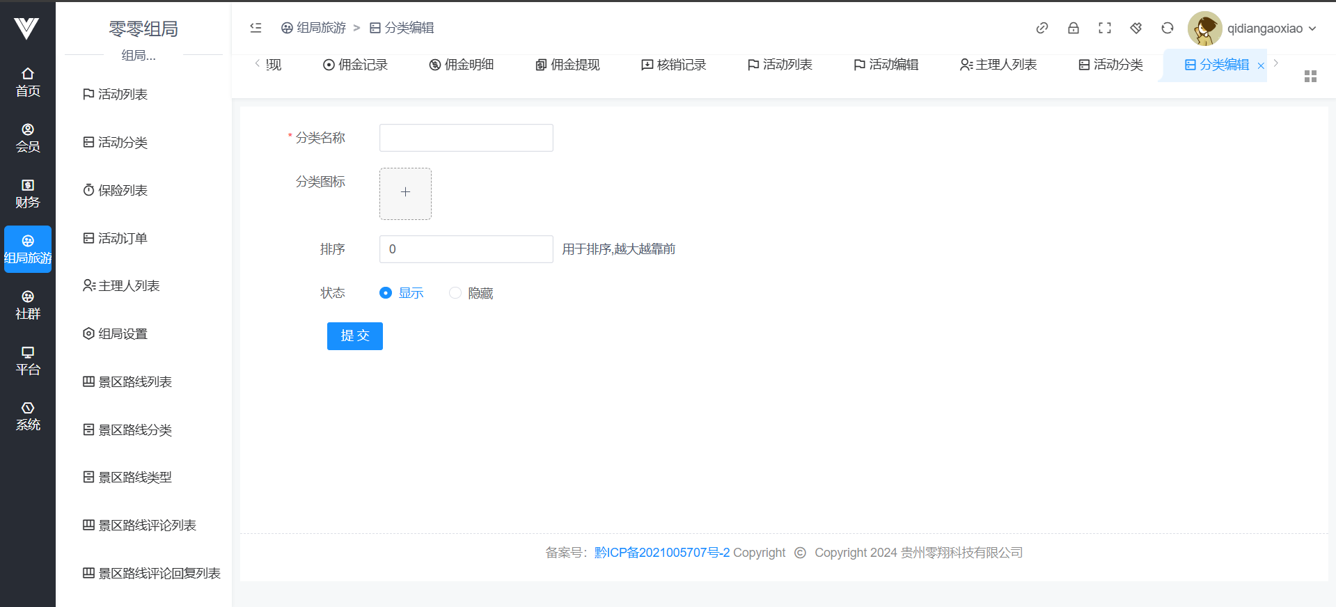 在此处添加活动的分类,添加图标和名字即可