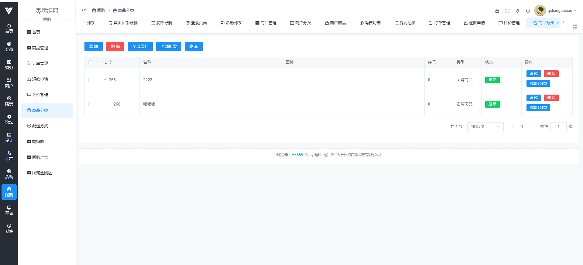 对团购的商品添加分类,在此处设置好之后,在商品列表里才可以选择对应分类