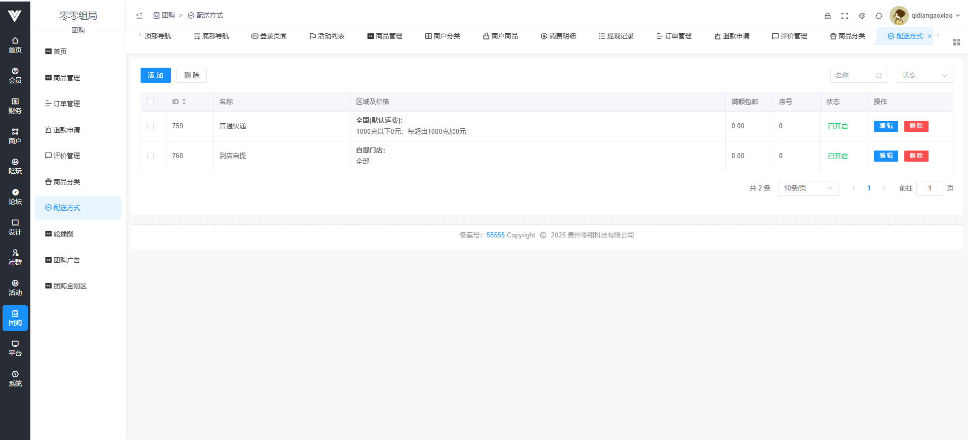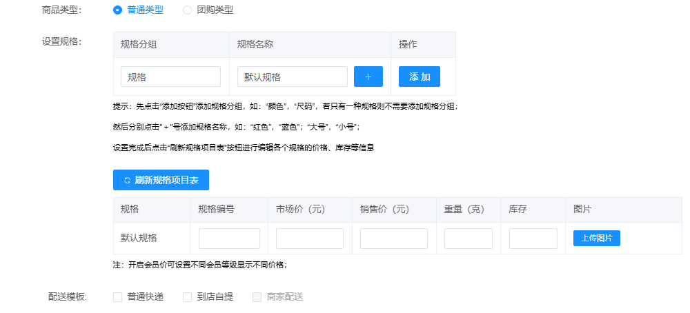设置了对应的配送方式之后,在商品列表的普通类型商品里可以选择用哪些配送方式配送此商品