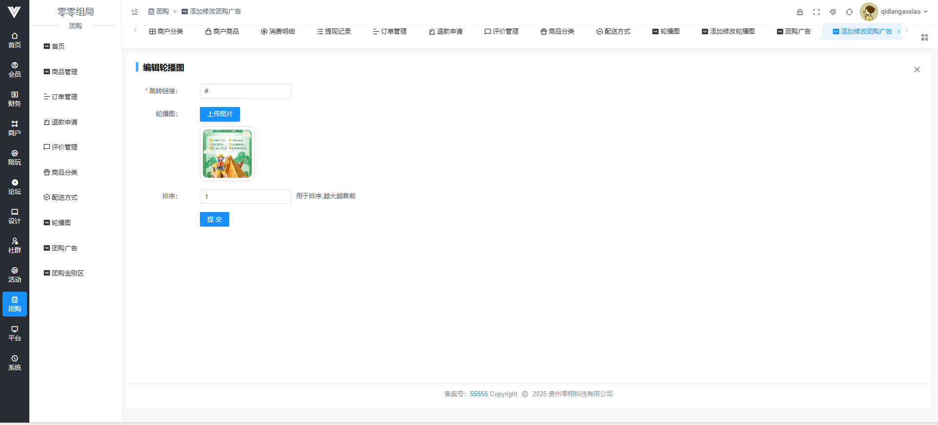 此处设置的是在团购页面的为你推荐里面的商品列表里的广告,同样是设置图片和跳转链接