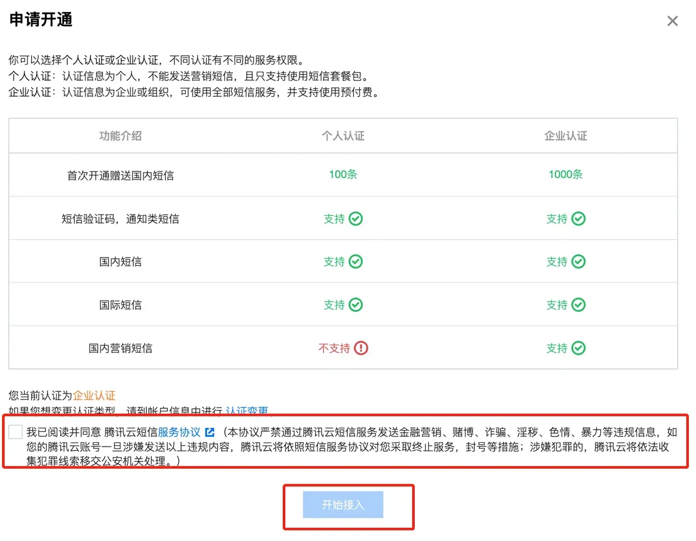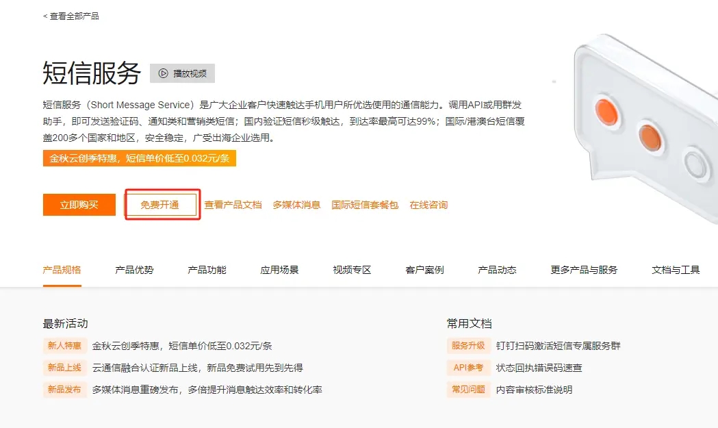 目前支持阿里云短信接口和腾讯云短信接口 首先在阿里云控制台或腾讯云短信接口添加短信服务,然后在国内消息中添加短信签名及短信模板 在概述的AccessKey中查看AccessKey ID及AccessKey Secret 然后将AccessKey ID、AccessKey Secret、短信签名、模板CODE配置到短信设置中 发送记录:记录短息发送记录\ 腾讯云短信服务开通申请及配置流程 1、点击前往“腾讯云短信服务平台”,进入以后先申请账号,如果之前申请过,直接登录,登录以后点击页面中的免费领取短信(个人认证:100条免费短信;企业认证:1000条免费短信)  2、开通后,进入短信控制台,可跟随概览页>新手配置指引配置申请短信签名、模板并发送短信。  3、配置短信内容:先创建签名再创建正文模板 4、审核通过后,把短信签名,正文模板编号填写到后台,点击右上角的头像---访问管理---API密钥管理,获取AccessKey ID、AccessKey Secret  应用SDK AppID:短信--应用列表  后台配置:填写AccessKey ID、AccessKey Secret、应用SDK AppID、短信签名和短信模板id    注意:短信模板设置里填写的是模板id,不是模板内容示例,短信模板按照后台的模板内容示例申请 阿里云短信服务开通申请及配置流程 1、点击前往“阿里云短信服务平台”,进入以后先申请账号(完成实名认证),如果之前申请过,直接登录,登录以后搜索短信---点击开通  2、开通短信服务并进入短信服务控制台,点击左边的栏目的国内消息 3、先创建签名再创建正文模板 4、审核通过后,把短信签名,正文模板编号填写到后台,获取Access Key,需要将鼠标移动到右上角头像位置,不需要点击,显示Access Key管理并点击  注意:短信模板设置里填写的是模板CODE,不是模板内容示例或工单号,短信模板按照后台的模板内容示例申请  注:外卖订单的送达通知写的平台是主校区首页→控制台→系统名字内设置的名字