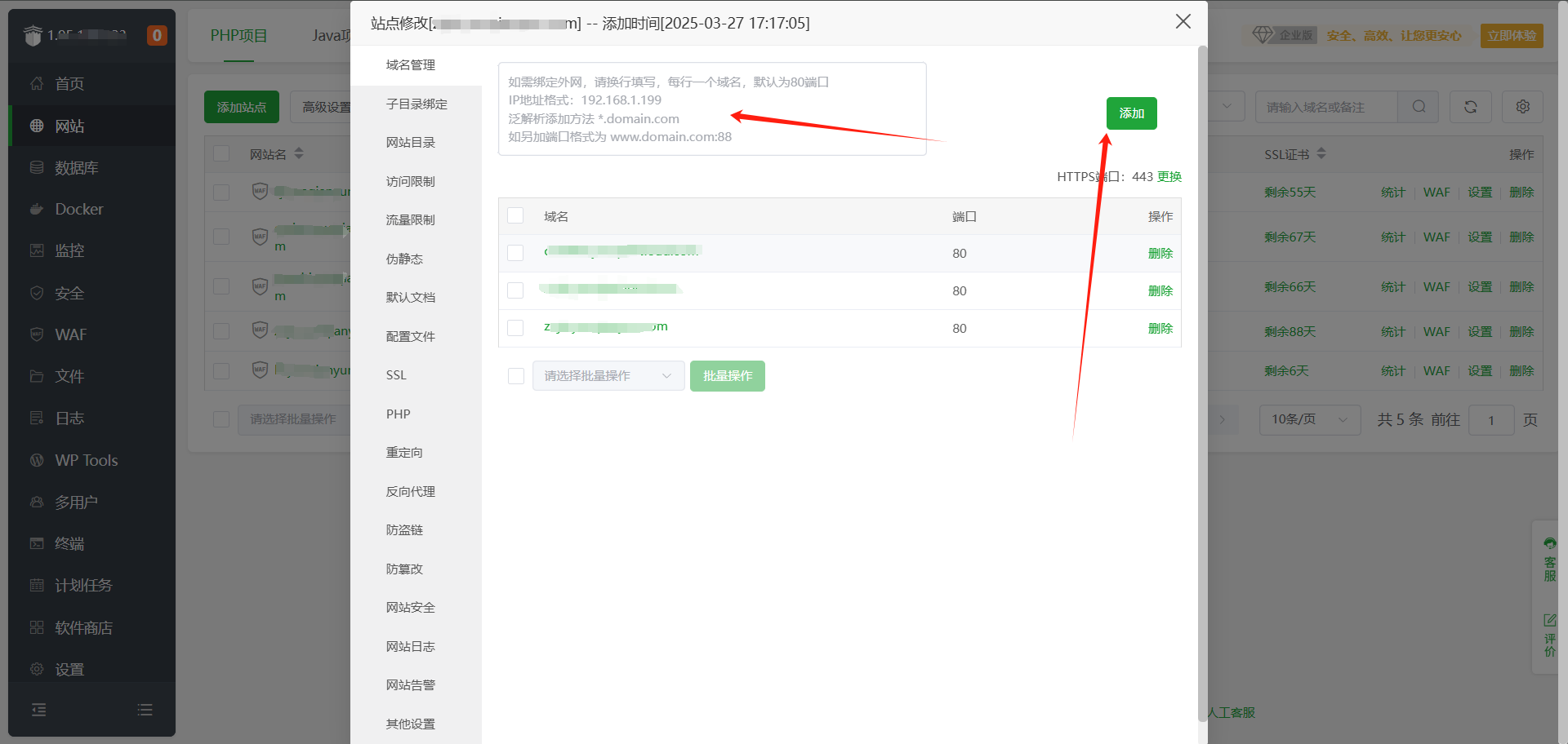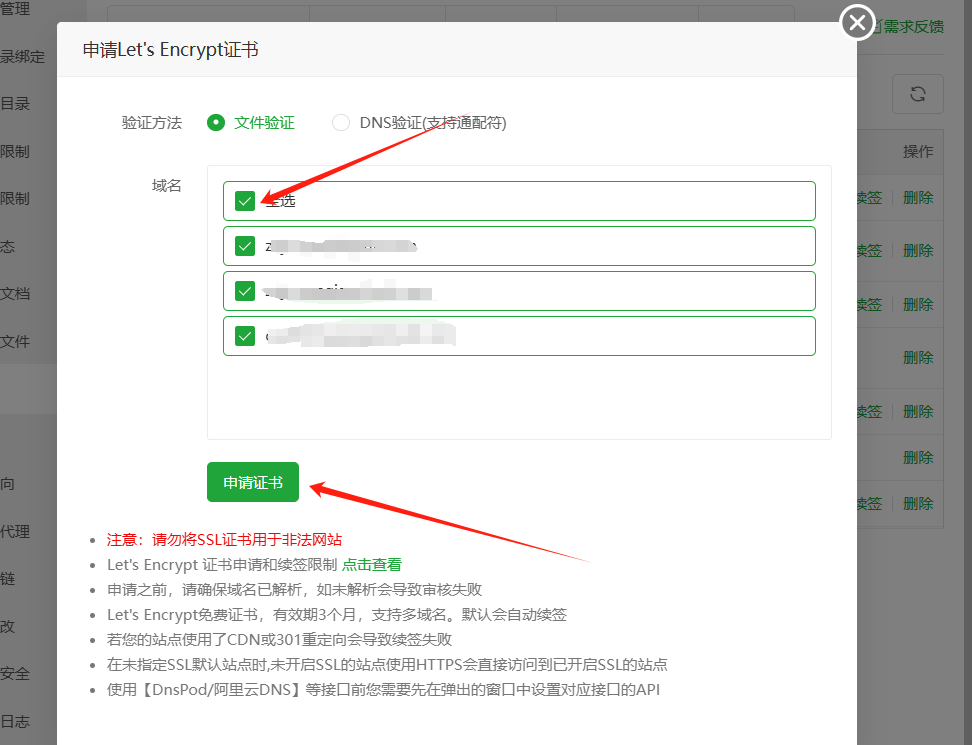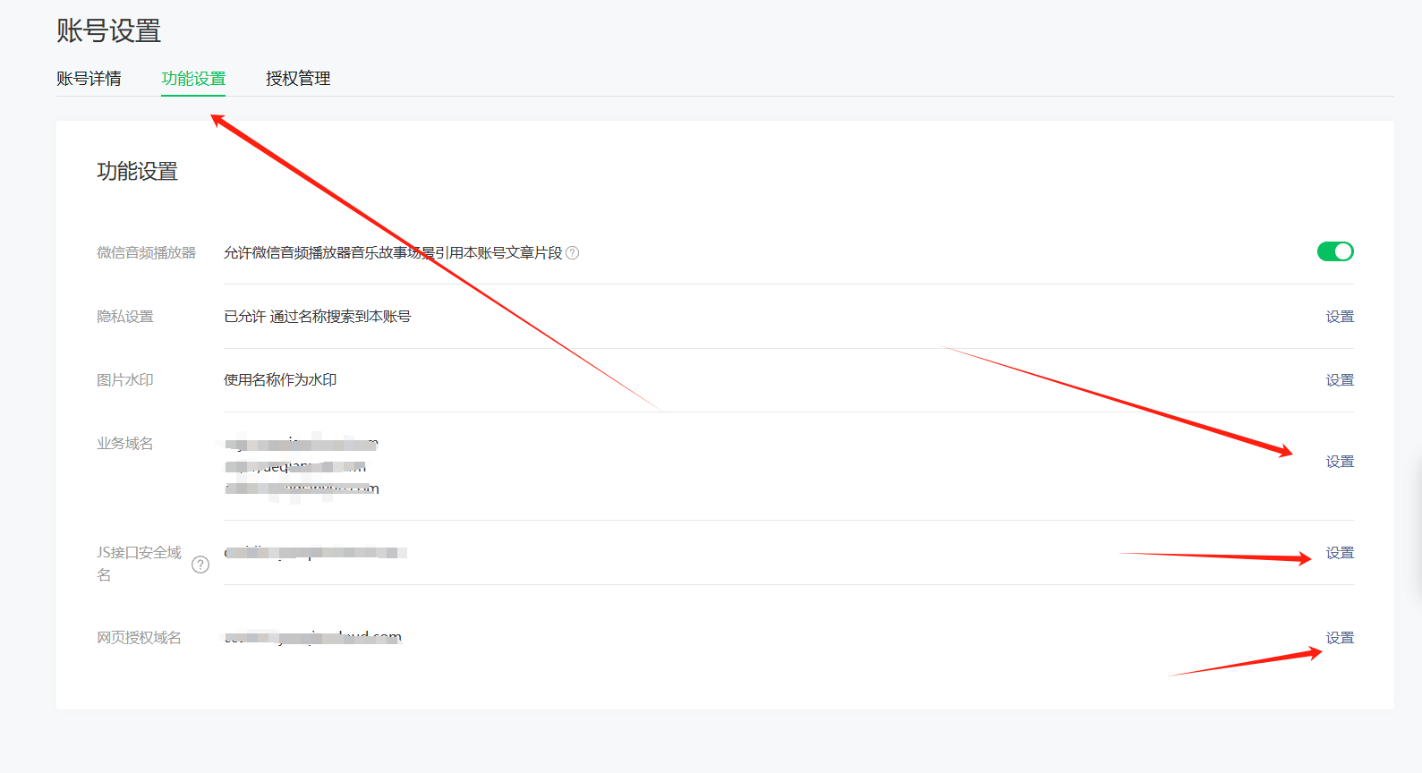 以下是已经有的坑位换域名操作,新添加的坑位,在一开始添加坑位的时候就填好子域名,坑位正常绑定公众号和小程序就行。 1、首先解析子域名,添加到宝塔上,查询申请ssl证书,申请的时候选择全部   2、把域名填到对应坑位里,然后去公众号平台,账号设置下,功能设置里,业务域名、JS接口安全域名、网页授权域名,三个域名配置成添加的子域名   3、公众号服务器配置,也重新绑定换成新的子域名  注!!也就是添加子域名后,公众号重新走一遍绑定流程,小程序不用管