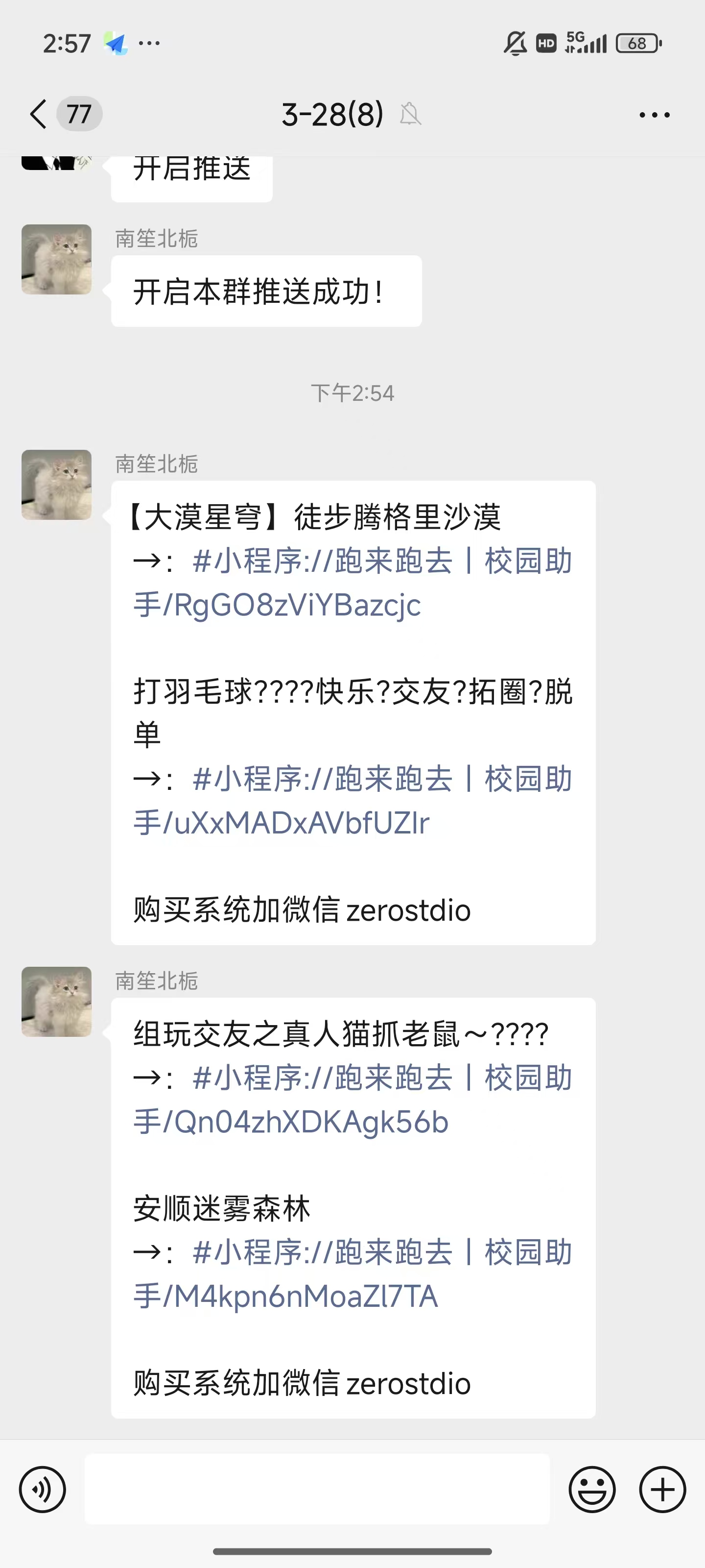 机器人推送功能,每年600元 【示例】可实时推送,时间段推送。注意!短链需要小程序添加一级类目商家自营,二级分类随便选 自备windows server 2012服务器、微信号