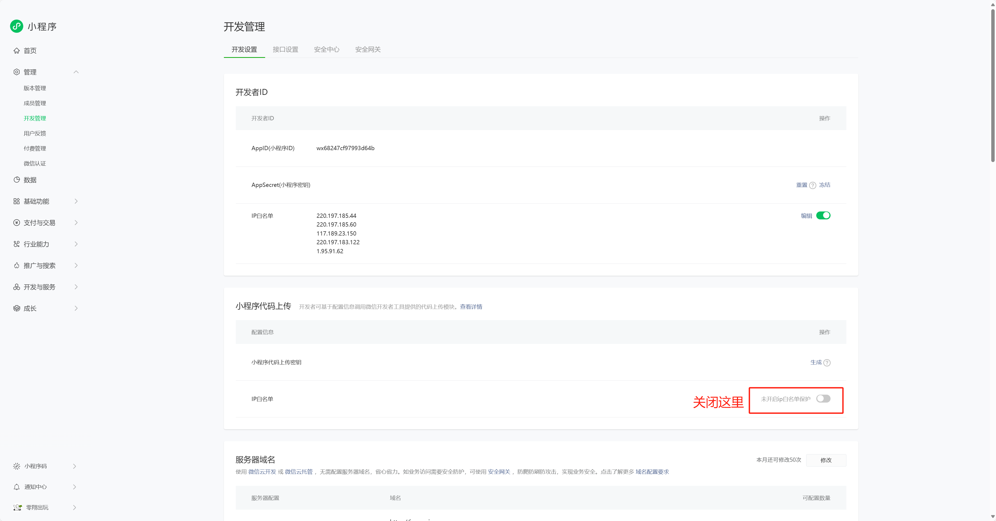 5、关闭小程序发货管理