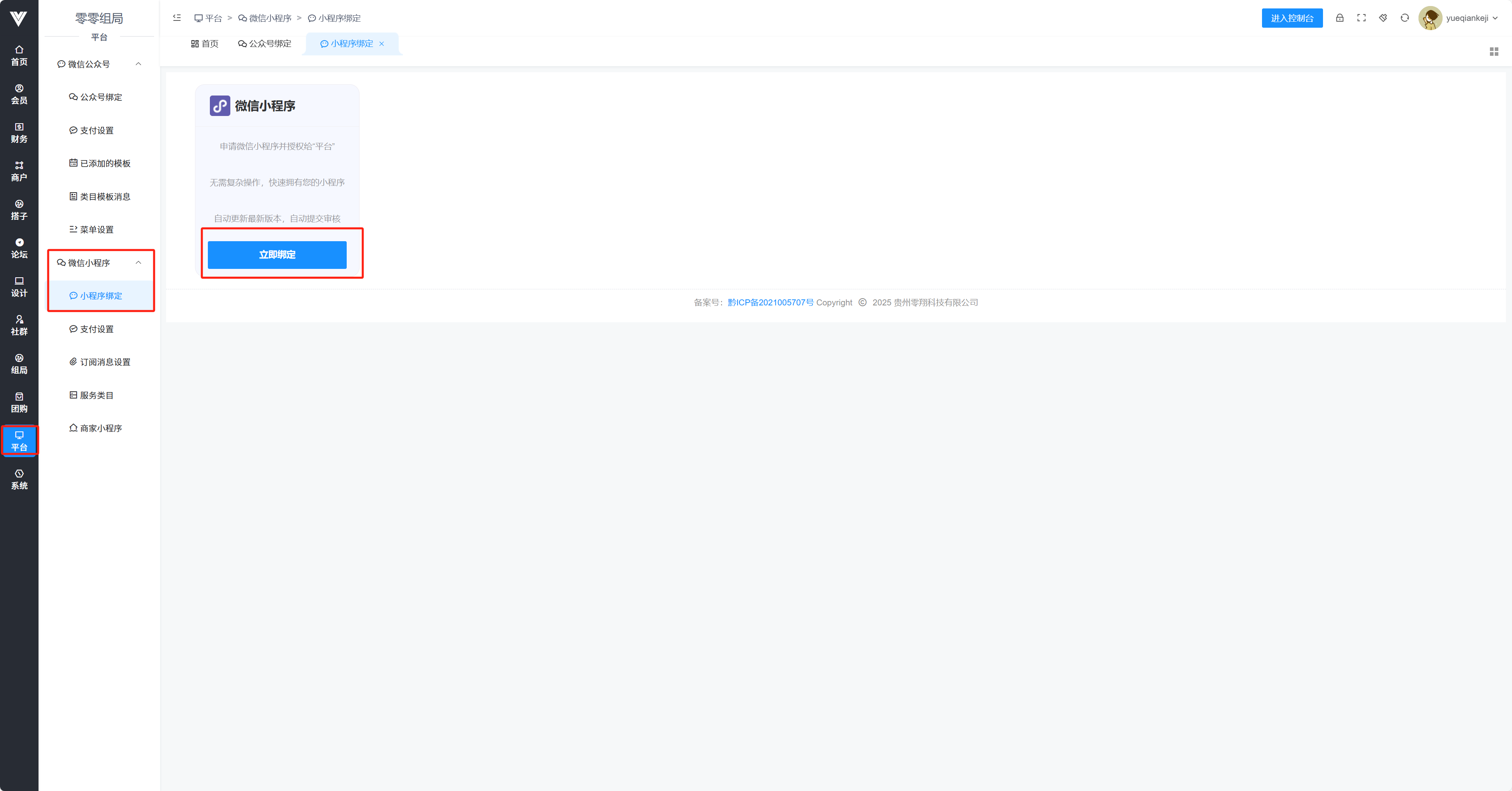 小程序绑定