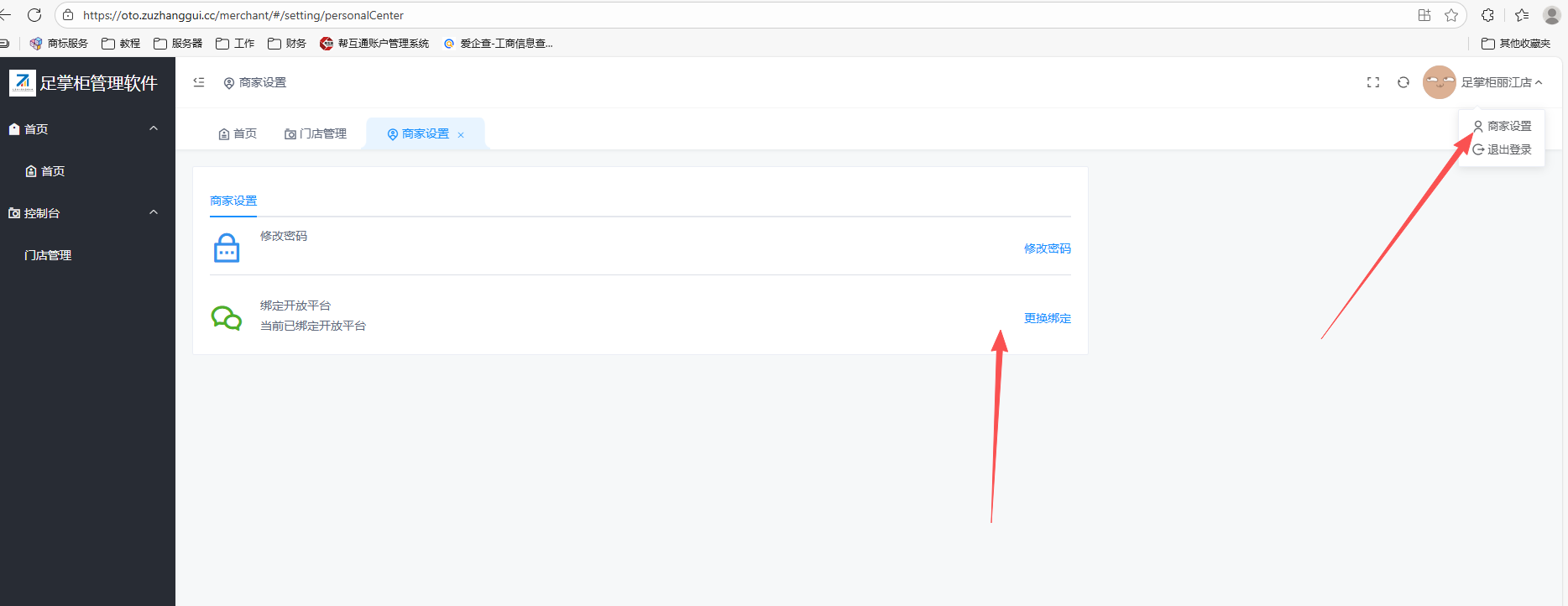 1、登录商家管理后台: [https://oto.zuzhanggui.cc/merchant/#/login](https://oto.zuzhanggui.cc/merchant/)  2、右上角-商家设置-绑定公众号  3、需要隔着屏幕扫码,不能长按识别