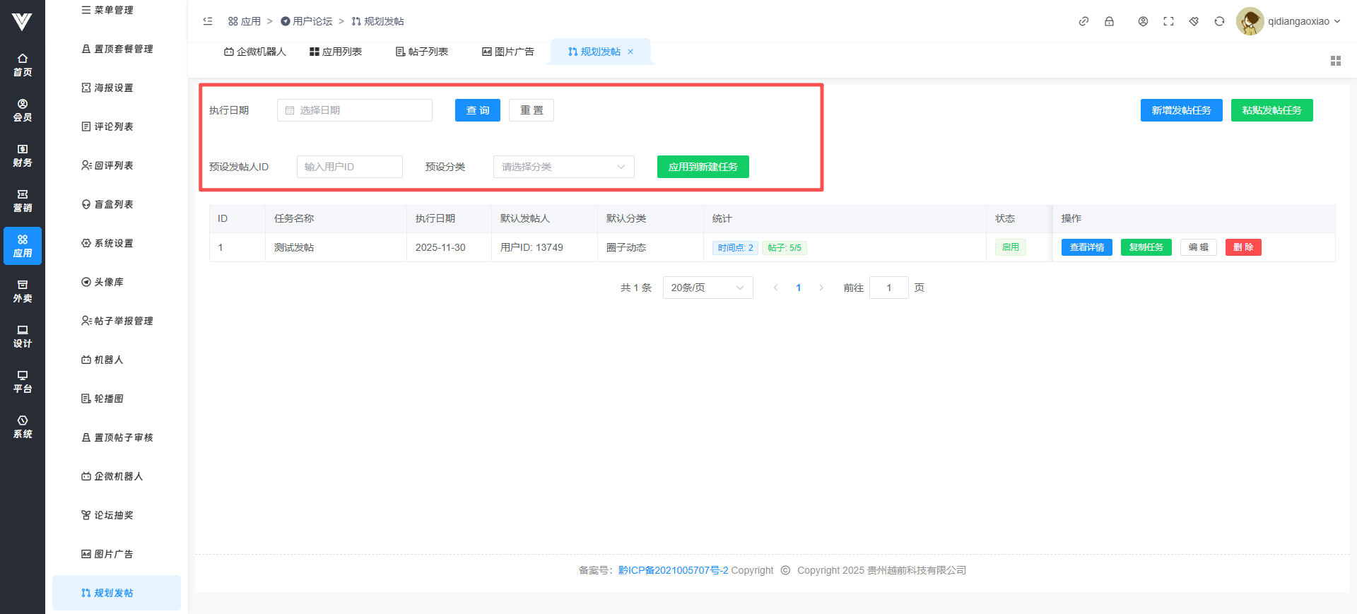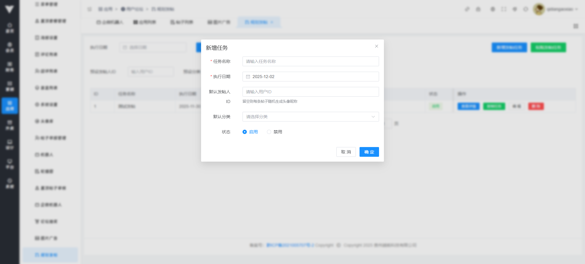 可以在此处进行定时水贴内容 可以先设置新建任务的默认内容  新增任务时候设置好对应内容即可  可以设置对应任务的具体时间节点以及具体发帖内容,注意需要重启socket