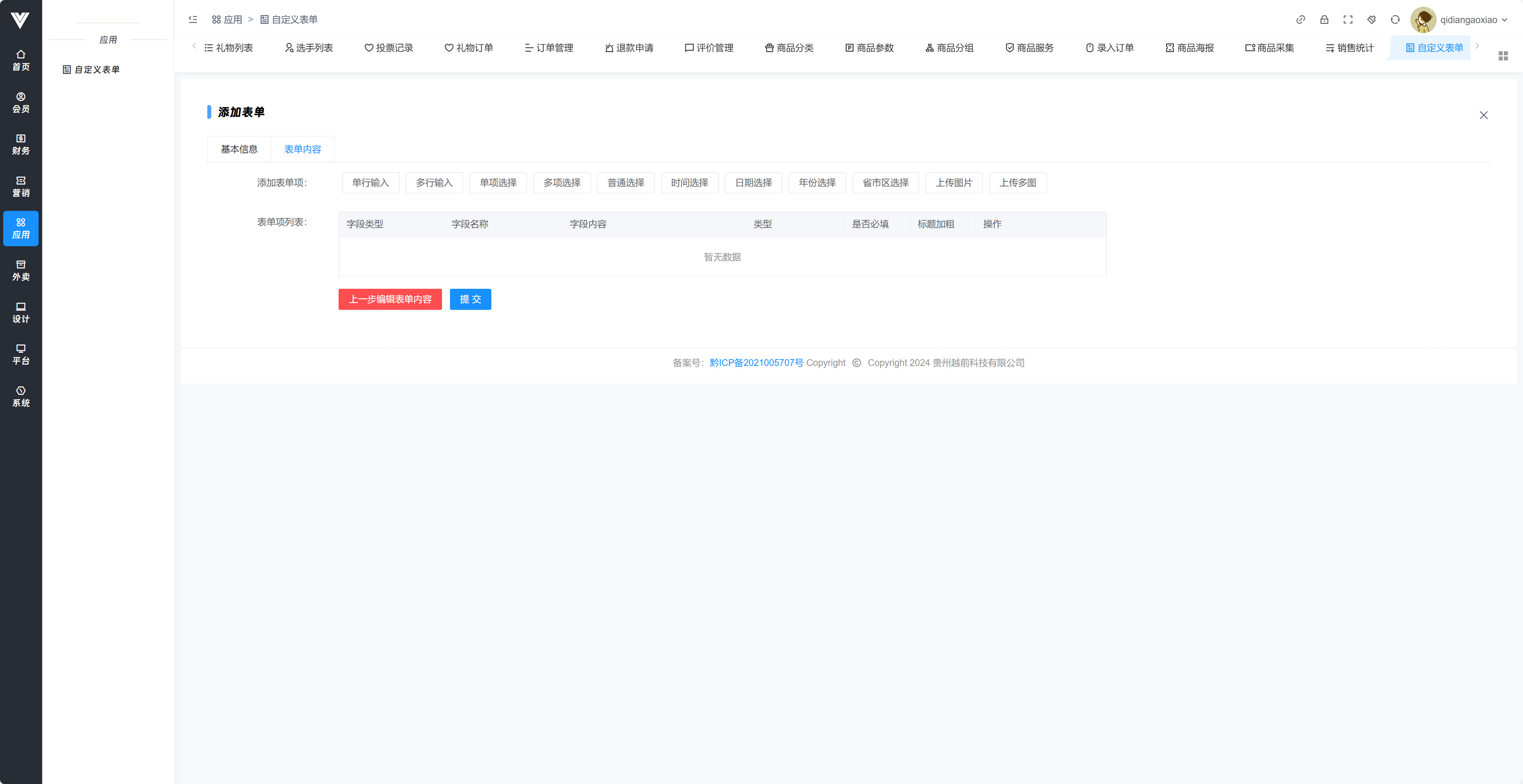 自定义表单