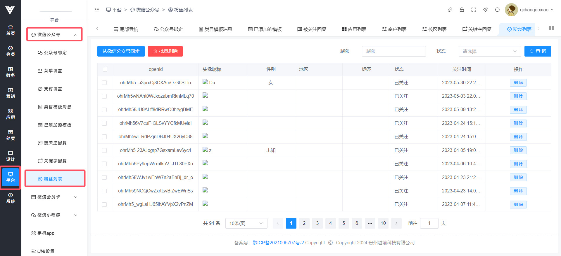 **粉丝列表** 在此处查看关注公众号的粉丝