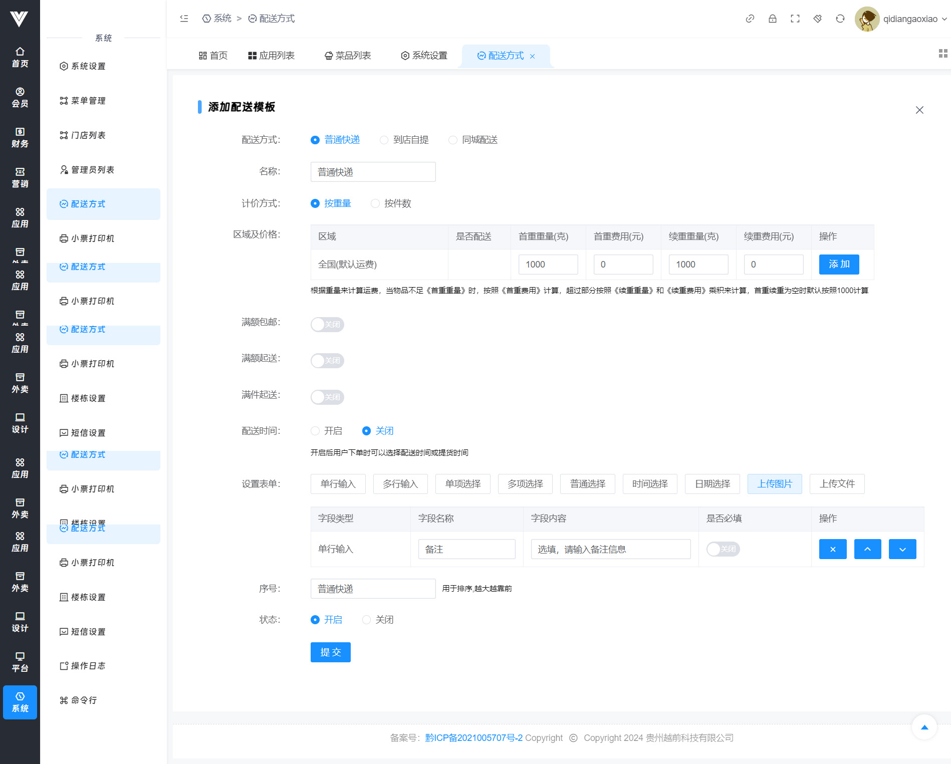 2.外卖设置
