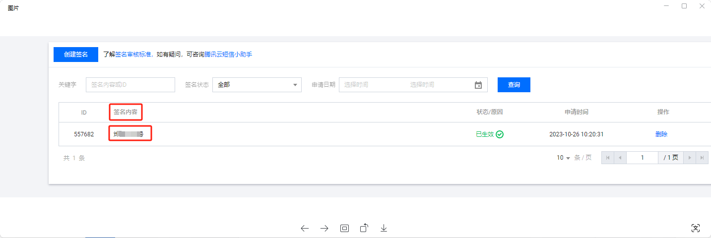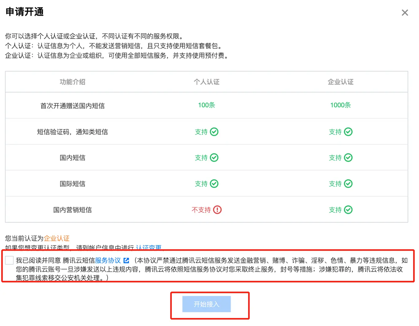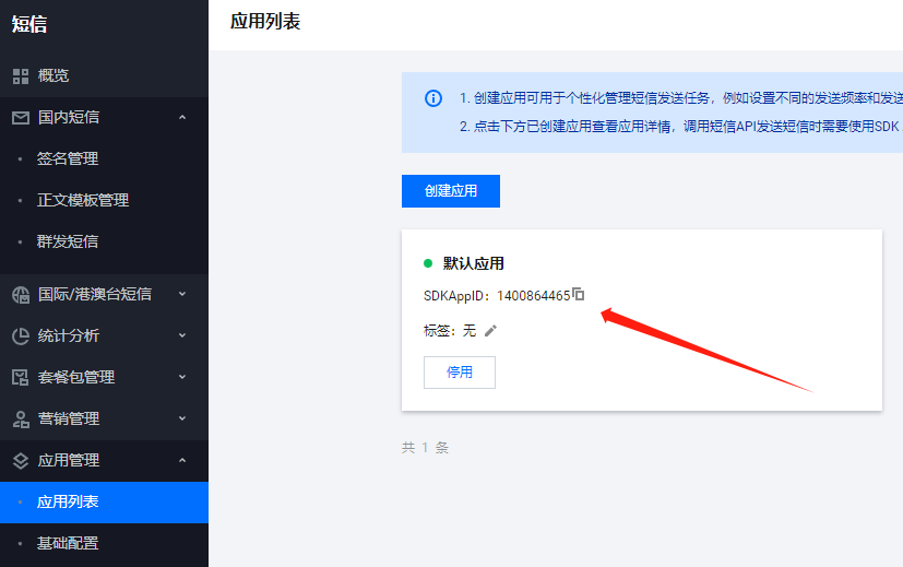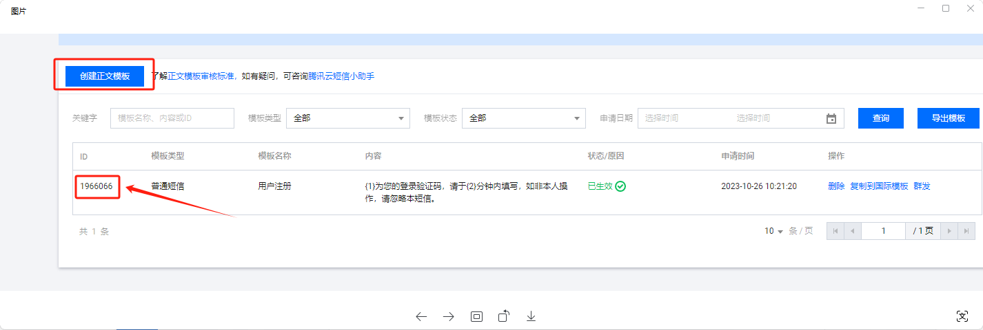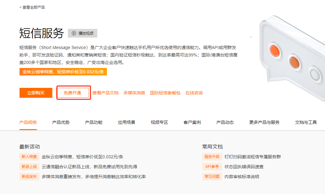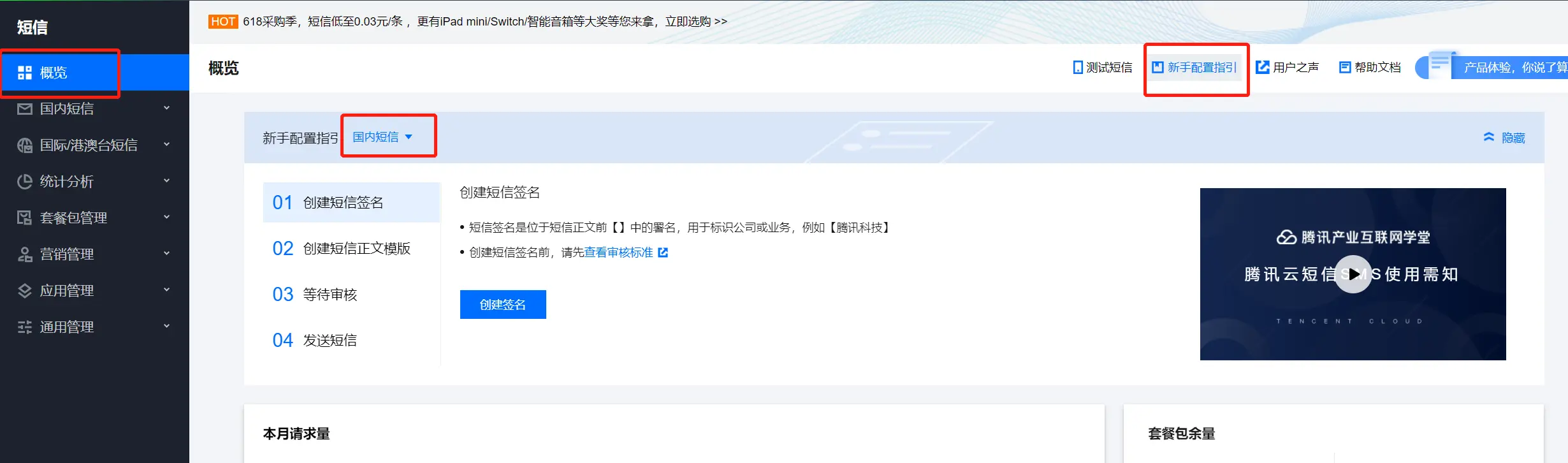 目前支持阿里云短信接口和腾讯云短信接口 首先在阿里云控制台或腾讯云短信接口添加短信服务,然后在国内消息中添加短信签名及短信模板 在概述的AccessKey中查看AccessKey ID及AccessKey Secret 然后将AccessKey ID、AccessKey Secret、短信签名、模板CODE配置到短信设置中  发送记录:记录短息发送记录\\ **腾讯云短信服务开通申请及配置流程** 1、点击前往“[腾讯云短信服务平台](https://cloud.tencent.com/product/sms)”,进入以后先申请账号,如果之前申请过,直接登录,登录以后点击页面中的免费领取短信(个人认证:100条免费短信;企业认证:1000条免费短信)  2、开通后,进入短信控制台,可跟随[**概览页**](https://console.cloud.tencent.com/smsv2)\>**新手配置指引**配置申请短信签名、模板并发送短信。  3、配置短信内容:先创建签名再创建正文模板 4、审核通过后,把短信签名,正文模板编号填写到后台,点击右上角的头像---访问管理---API密钥管理,获取AccessKey ID、AccessKey Secret  应用SDK AppID:短信--应用列表  后台配置:填写AccessKey ID、AccessKey Secret、应用SDK AppID、短信签名和短信模板id    注意:短信模板设置里填写的是模板id,不是模板内容示例,短信模板按照后台的模板内容示例申请  **阿里云短信服务开通申请及配置流程** 1、点击前往“[阿里云短信服务平台](https://cn.aliyun.com/)”,进入以后先申请账号(完成实名认证),如果之前申请过,直接登录,登录以后搜索短信---点击开通  2、开通短信服务并进入短信服务控制台,点击左边的栏目的国内消息 3、先创建签名再创建正文模板 4、审核通过后,把短信签名,正文模板编号填写到后台,获取Access Key,需要将鼠标移动到右上角头像位置,不需要点击,显示Access Key管理并点击  注意:短信模板设置里填写的是模板CODE,不是模板内容示例或工单号,短信模板按照后台的模板内容示例申请  注:外卖订单的送达通知写的平台是主校区首页→控制台→系统名字内设置的名字