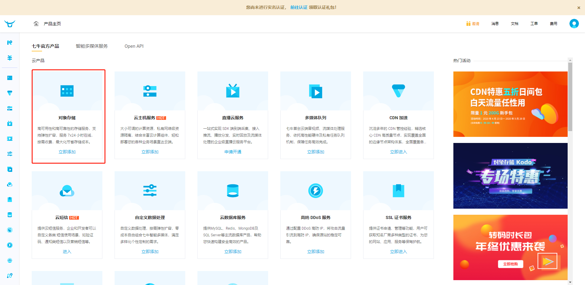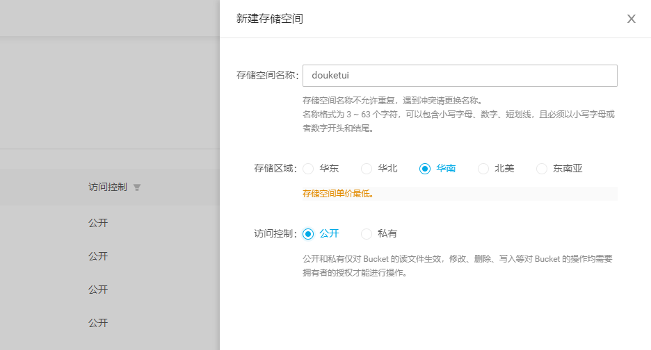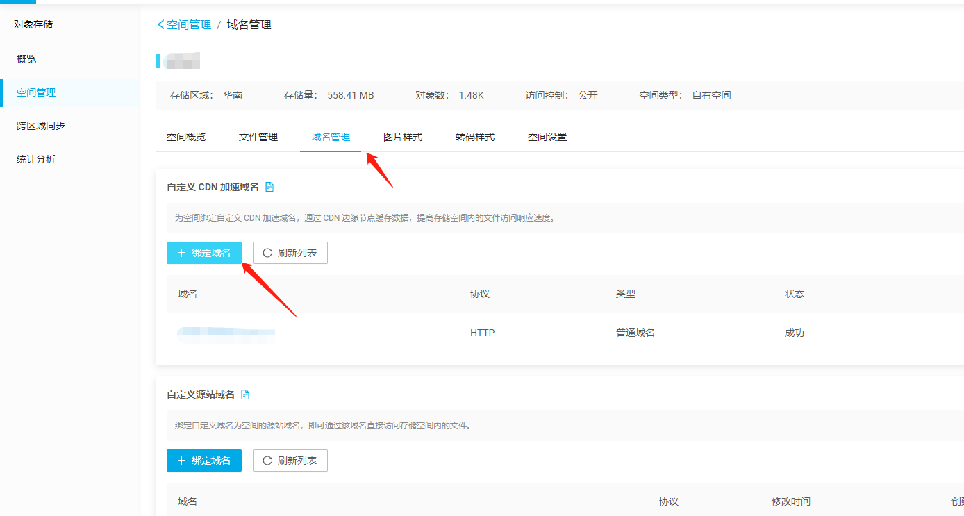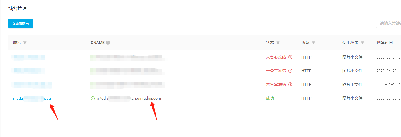 ### **七牛云存储配置说明** 1、打开七牛云后台,后台地址是 [https://s.qiniu.com/Zj6fIf](https://s.qiniu.com/Zj6fIf) 选择七牛产品-云产品-对象存储-空间管理-新建空间,存储区域选择当前服务器所在的区域,访问设置选择公有。    2、Bucket创建成功以后,我们点击Bucket,找到域名管理。点击绑定域名,填写一个我们想要使用的域名。添加成功以后,将域名CNAME解析到七牛。    3、创建完毕点击右上角头像个人中心-选择秘钥管理进入个人中心秘钥管理,将此处的AccessKey,SecretKey复制到后台的对应位置,Bucket填入刚刚创建的Bucket即可,此处的URL填写上面我们添加的域名,点击保存。